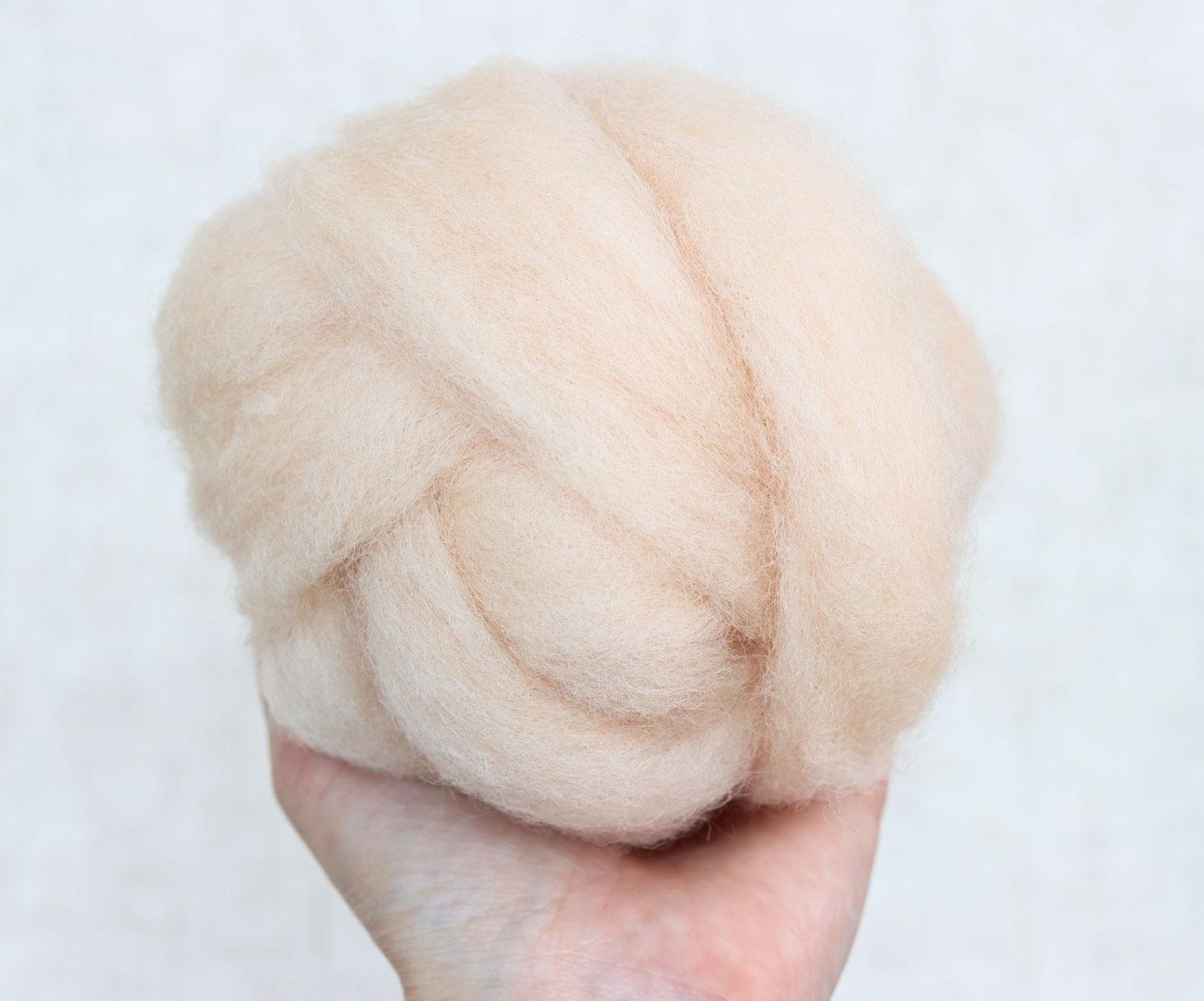 This dyed wool roving is fluffy and soft to the touch, and felts...