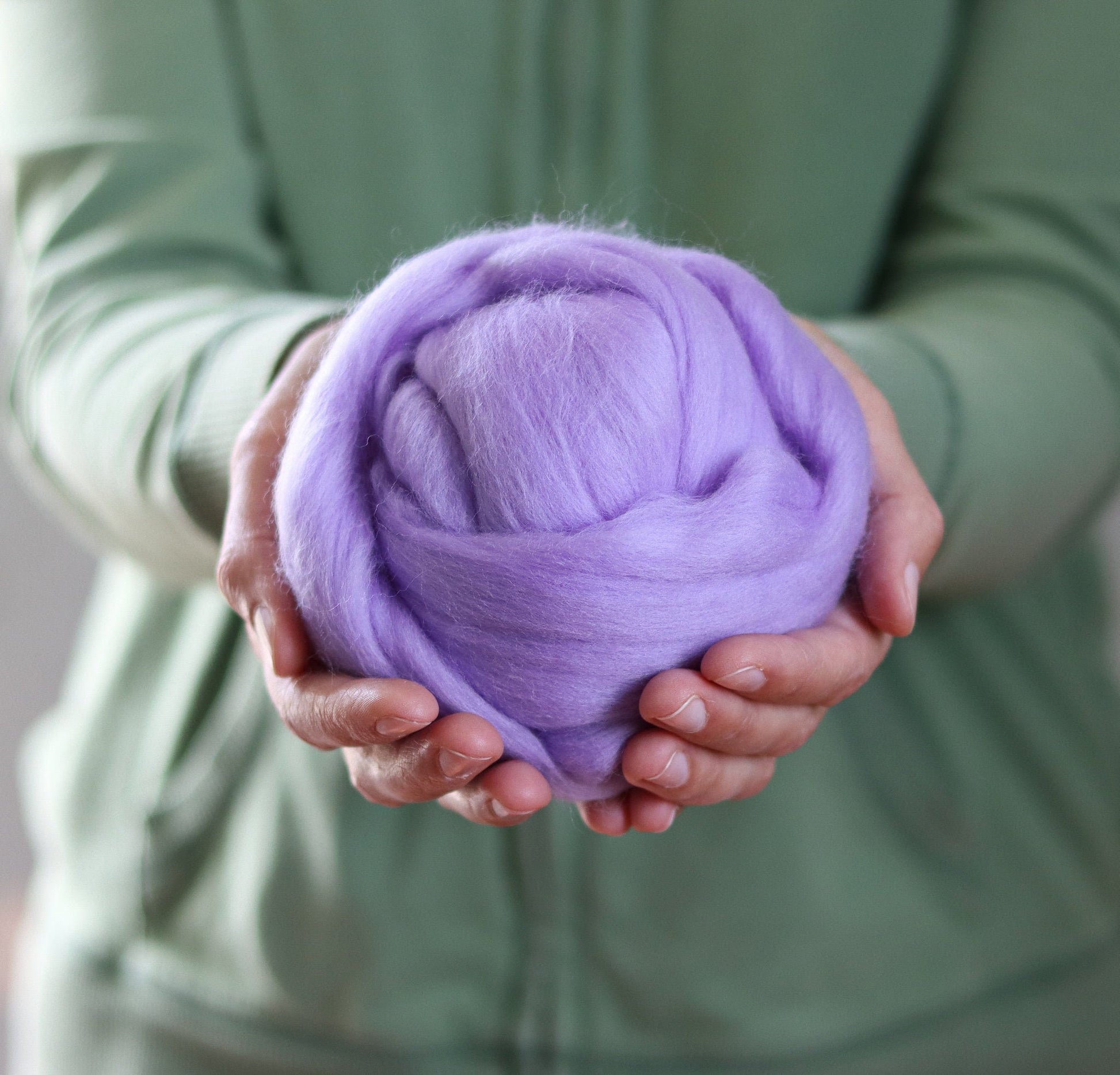 I am very excited to introduce these beautiful 100% Merino Wool roving to the shop! This is DHG merino wool roving, and it is 19 microns. Merino wool is a beautiful material to work with and is known for its softness and gentle sheen. It has many uses in fiber and textile art such as needle felting, wet felting, nuno felting, spinning, weaving, and arm/giant knitting.
