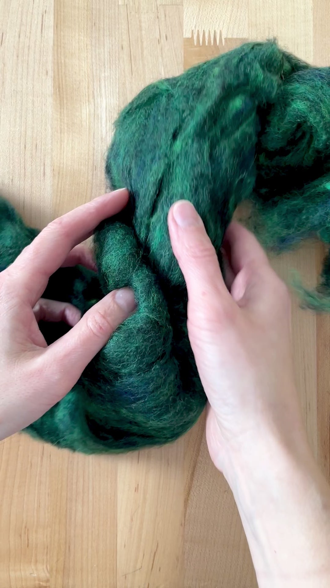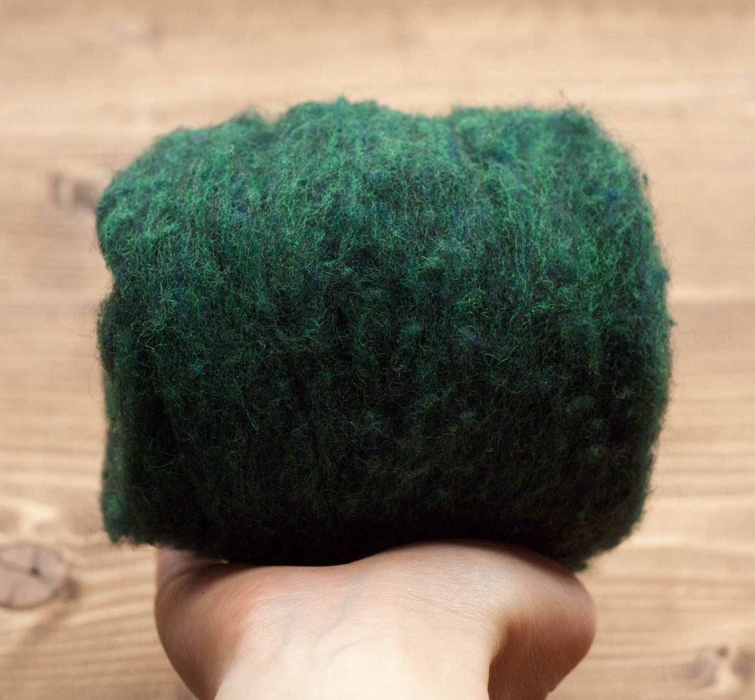 This is 100% virgin wool, and is made up of fleece from several breeds of sheep that combine to create a fluffy and soft batting with a great texture. It can be used for needle felting, wet felting, and it will spin into a lovely textured yarn.