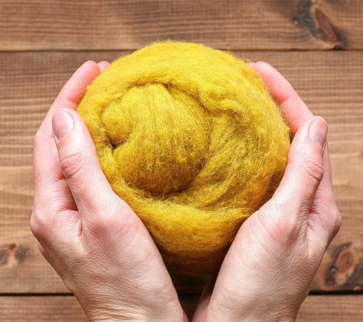 This is 100% virgin wool, and is made up of fleece from several breeds of sheep that combine to create a fluffy and soft batting with a great texture. It can be used for needle felting, wet felting, and it will spin into a lovely textured yarn.