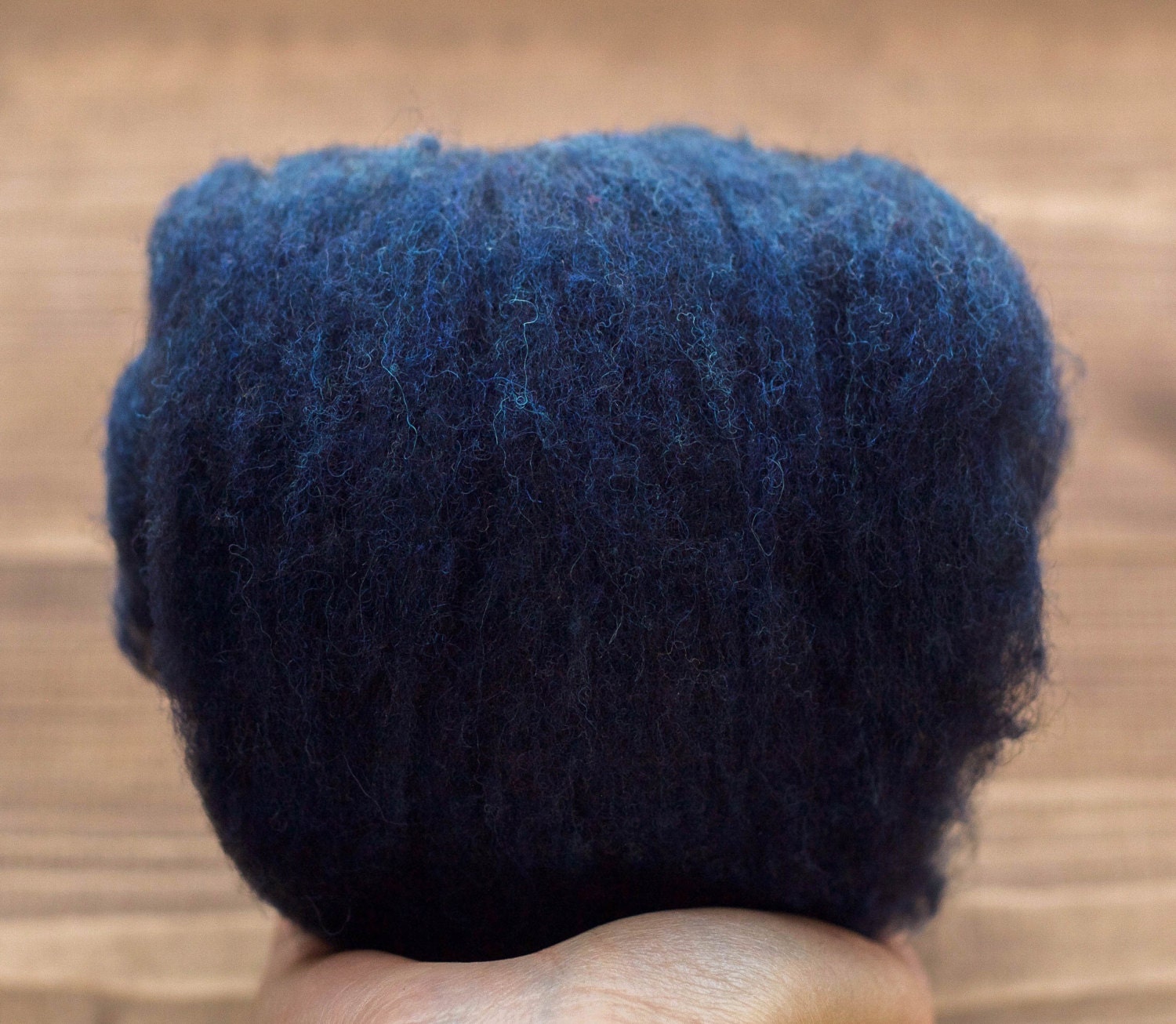 This is 100% virgin wool, and is made up of fleece from several breeds of sheep that combine to create a fluffy and soft batting with a great texture. It can be used for needle felting, wet felting, and it will spin into a lovely textured yarn.