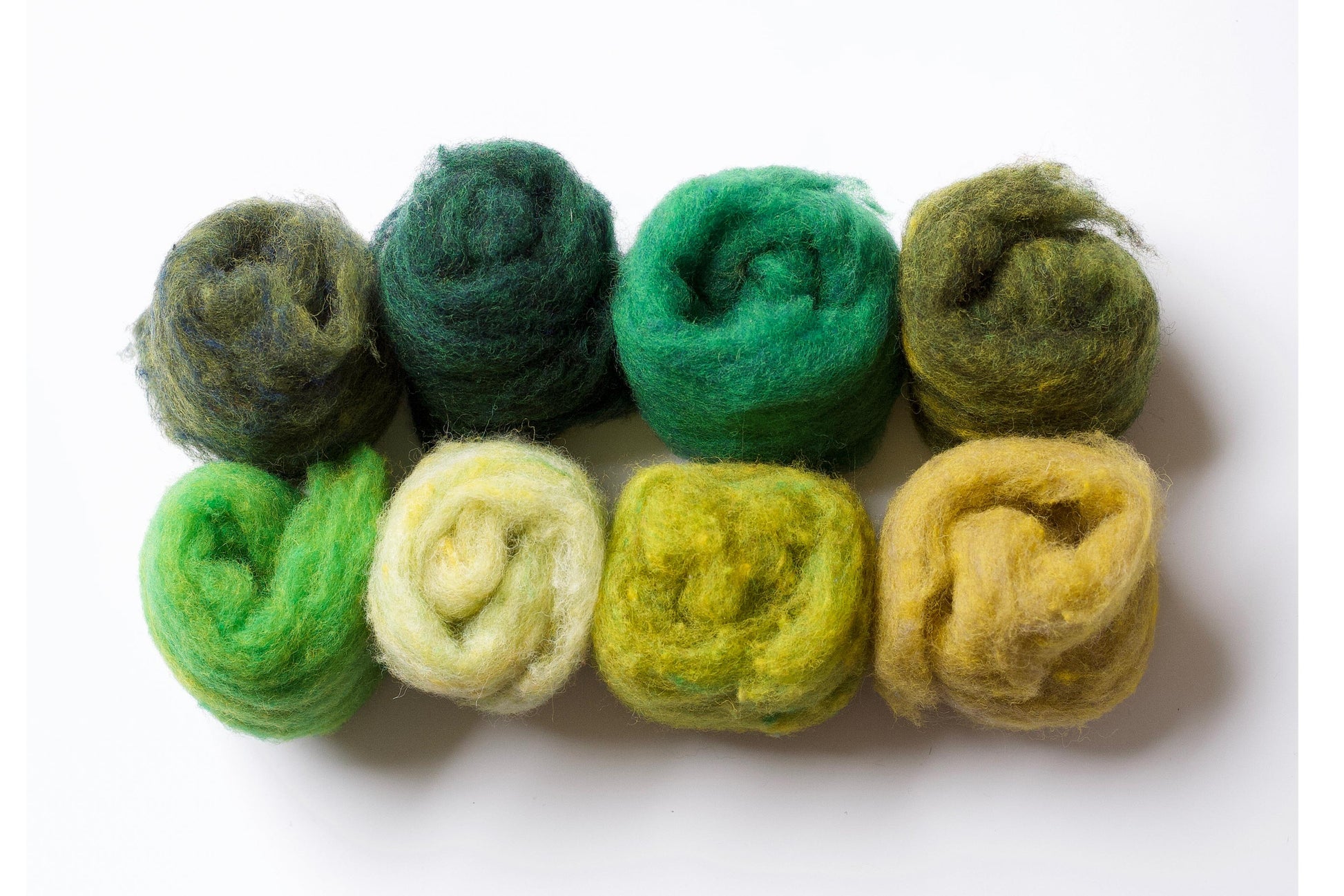 Fields of Green - Carded Wool Batt Sampler for Needle Felting and Wet Felting