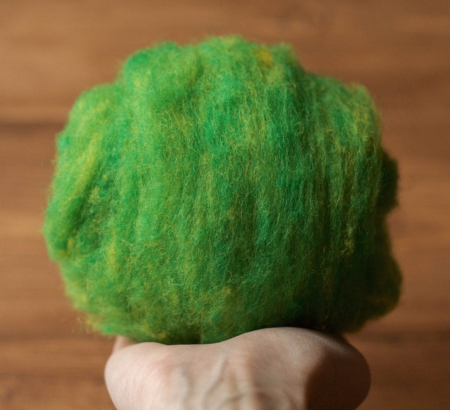 Meet Willow Moss, a vibrant warm green color featuring variegated shades of greens and yellows. This is 100% virgin wool. It is very fluffy and soft to the touch, with lovely textural nubs throughout.